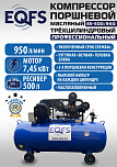 Компрессор воздушный, передвижной, поршневой, масляный, трёхцилиндровый. Быстро достигает нужного давления. Трёхпоршневая головка двигателя уменьшает износ деталей и увеличивает срок службы. Ремённый привод — предохранят мотор от поломки. Идеальное решение для шиномонтажа, автосервиса, строительства, покраски, промышленности. Давление 8 Атм. Производительность 950 л/мин. Мощность 7,45 кВт. Напряжение 380В. Ёмкость ресивера 500 л. Гарантия 12 месяцев.