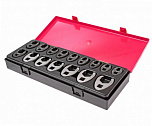 Набор ключей рожково-накидных в прочном презентабельном боксе (14 предметов). В комплекте: ключ рожково-накидной с трещоткой: 8, 10, 11, 12, 13, 14, 15, 16, 17, 18, 19 мм. - 11 шт и адаптеры 1/4", 3/8", 1/2" - 3 шт.