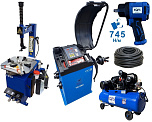 Комплект: шиномонтажный станок TS-21 для дисков: внешний 11÷20” + пистолет с манометром для подкачки шин + монтажка + пластиковые накладки на зажимные кулачки + регулятор давления с влагоотделителем и манометром. + TS-500 балансировочный станок с автозапуском, для колес легковых автомобилей и легких грузовиков, диаметр диска с резиной до 760 мм. размеры диска: ширина 3"–9” (76-228 мм), диаметр диска 10"–21” (254-533 мм). + кожух защитный + клещи + кронциркуль + быстрозажимная гайка + набор конусов + подкатной домкрат г/п 3,0т. 130-465мм. + ударный пневмогайковерт 1/2" крутящий момент 745Нм + шланг кислородный 9мм 20Атм. 10м
