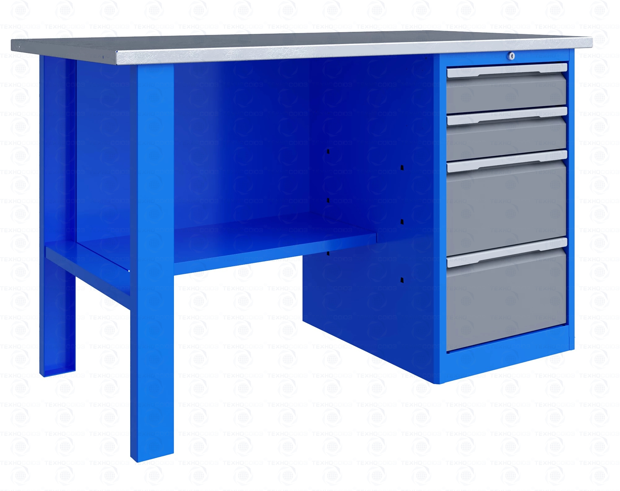 Тумба верстака - сварная. Ящики в тумбе устанавливаются на шариковых телескопических направляющих полного выдвижения. В тумбе P4 установлено два малых и два больших ящика. Внутренние размеры малых ящиков (ВхШхГ), не более: 103 х 397 х 520 мм. Внутренние размеры больших ящиков (ВхШхГ), не более: 222 х 397 х 520 мм. Тумбы с ящиками снабжены общим центральным замком с поворотом ригеля 180 градусов и подпружиненной тягой. В комплекте два ключа.